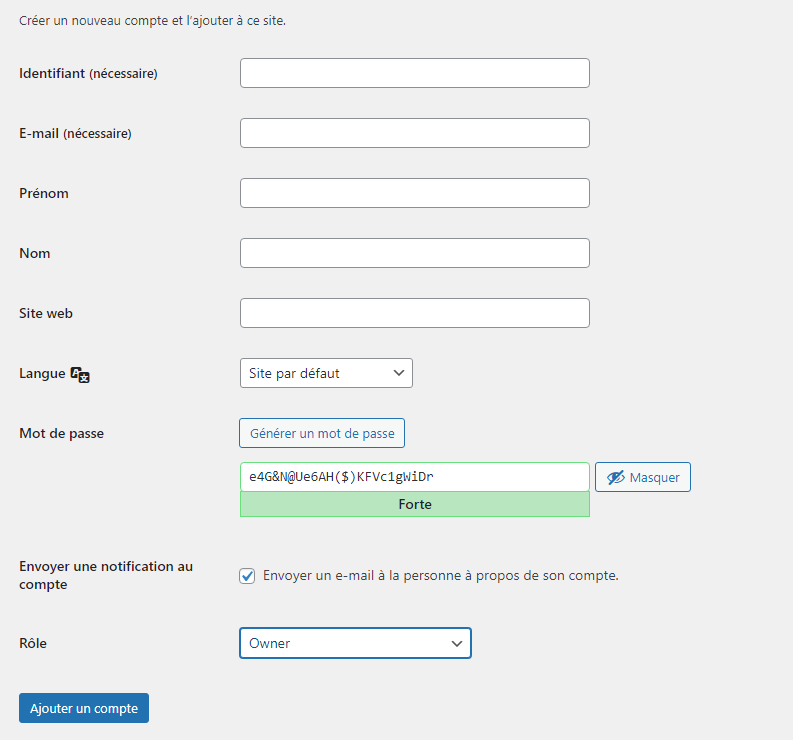Créé le compte de l'annonceur avec le role Owner
