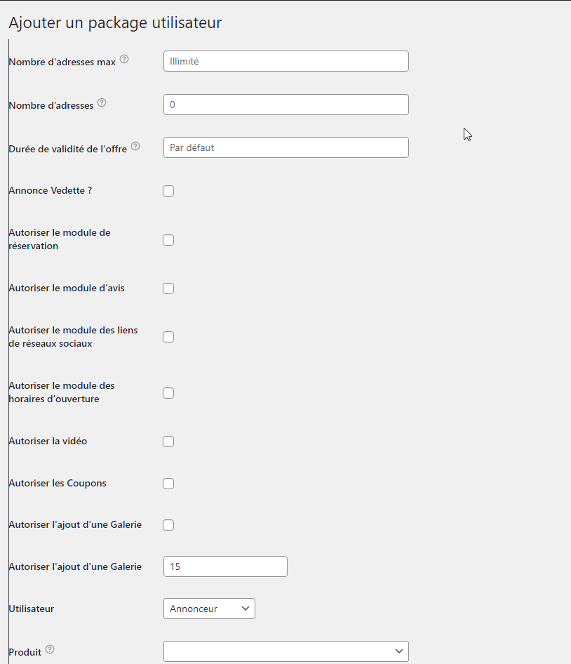 Apres avoir créé le compte utilisateur , retenez l'identifiant et allez dans Listeo editor -> gestionnaire de forfaits